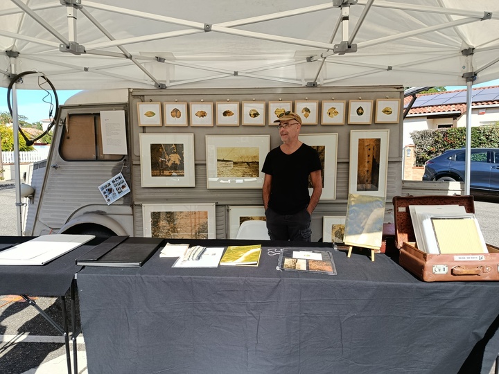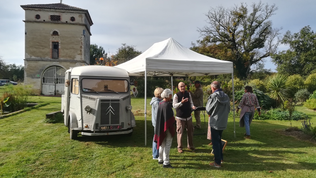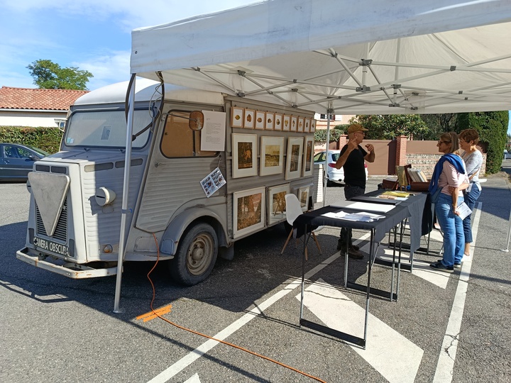 Les arts en balade Toulouse 8ème édition Ouverture des ateliers d'artistes du samedi 28 au 29 septembre 2024 Invité par Pédro, je présentais dans mon vieux camion Citroën HY, une caméra obscura ! une image renversante, pour le plaisir des yeux et du cognitif ! A l'extérieur sous un barnum, je donnais à voir des travaux récents d'Hélio-Chlorophylle-Type - Une plongée sensuelle dans le végétal.